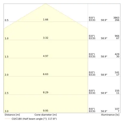 De lichtopbrengst (Lumen), geeft weer hoe krachtig het uitgestraalde licht is. Dit is belangrijk om te weten om de juiste sfeer te creëren. 0 tot 400 Lumen is bij uitstek geschikt voor accent- of sfeerverlichting. Een hoger aantal Lumen is, afhankelijk van de grootte van de ruimte, beter geschikt als ondersteunende- of basisverlichting. Heb je plafonds hoger dan 4 meter, dan is een lichtopbrengst van minimaal 8000lm aan te raden indien heldere verliching gewenst is (vb. in werkomgevingen).